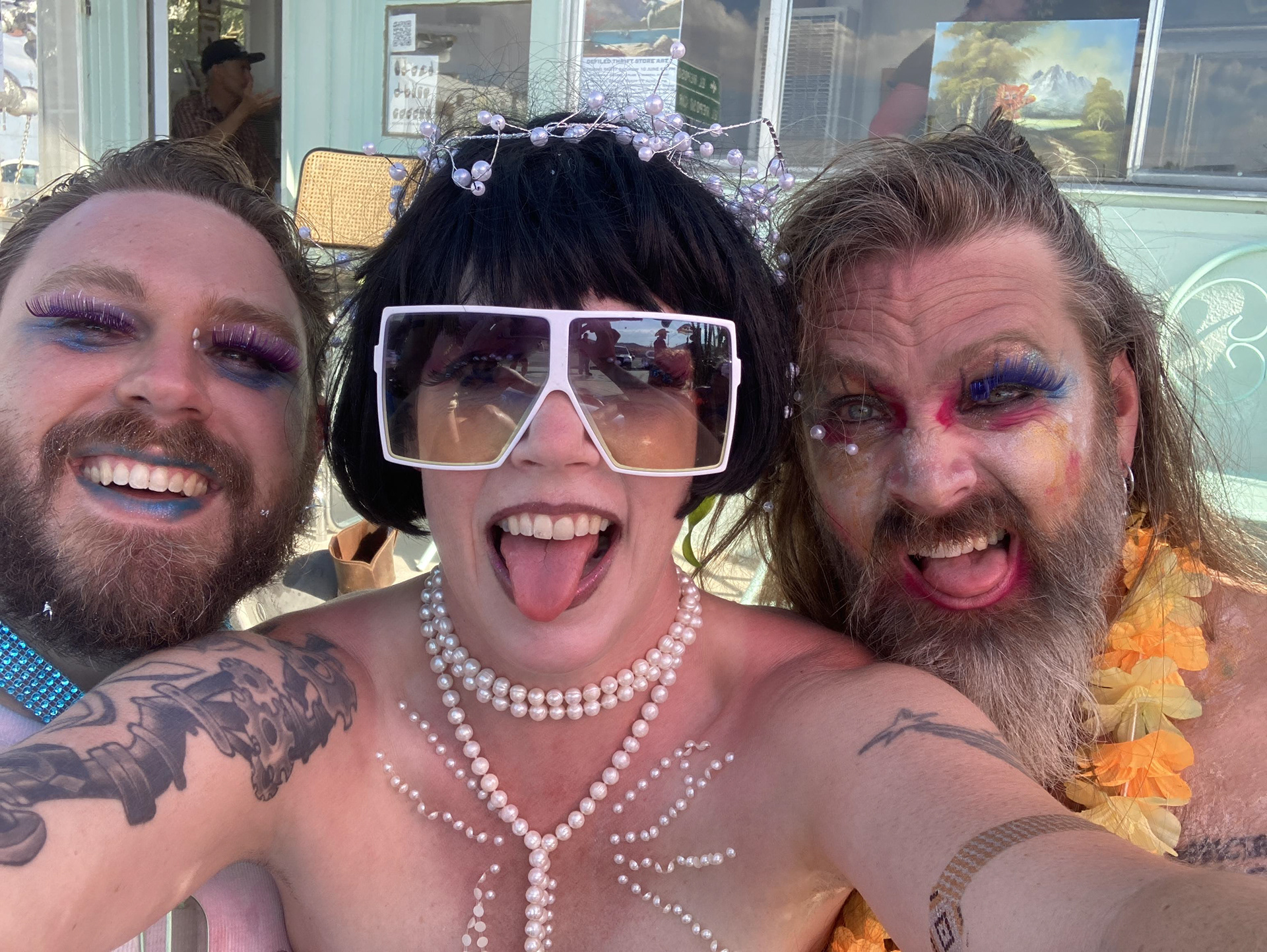 B&S Mermaids celebrate the freakshow in us all INCLUDING direct respect for The Coney Island Mermaid Parade and its promotions of artistic expression, Pride, BLM, Juneteenth, Alzheimer’s Awareness, Mother Earth’s Summer Solstice, Father’s Day… and, of course, our treasured home of booty-and-bounty where the sea used to be, our very own Joshua Tree!